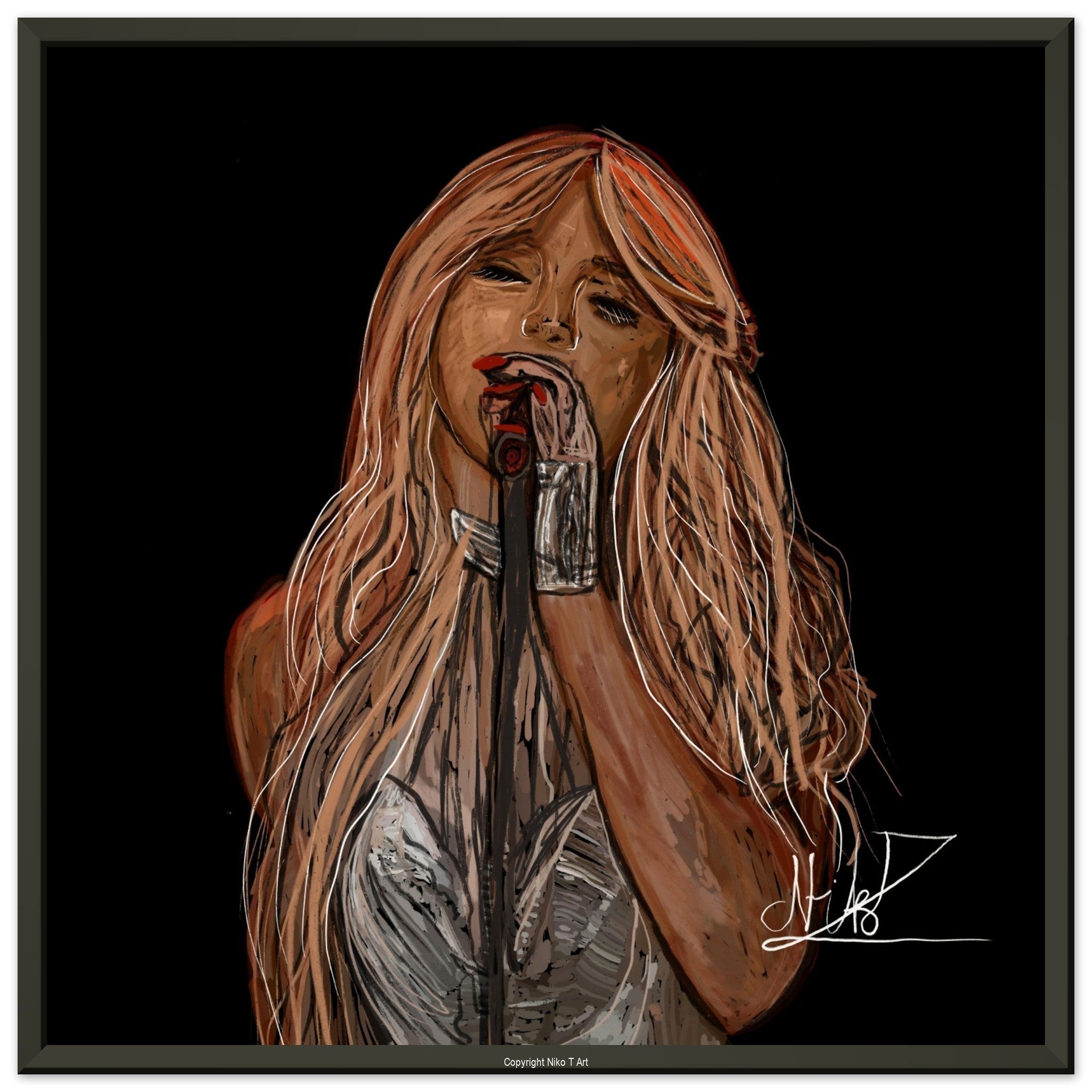 The paintings I do on my ipad are typically done with watercolour, oil paint, studio pens and pencil brushes.