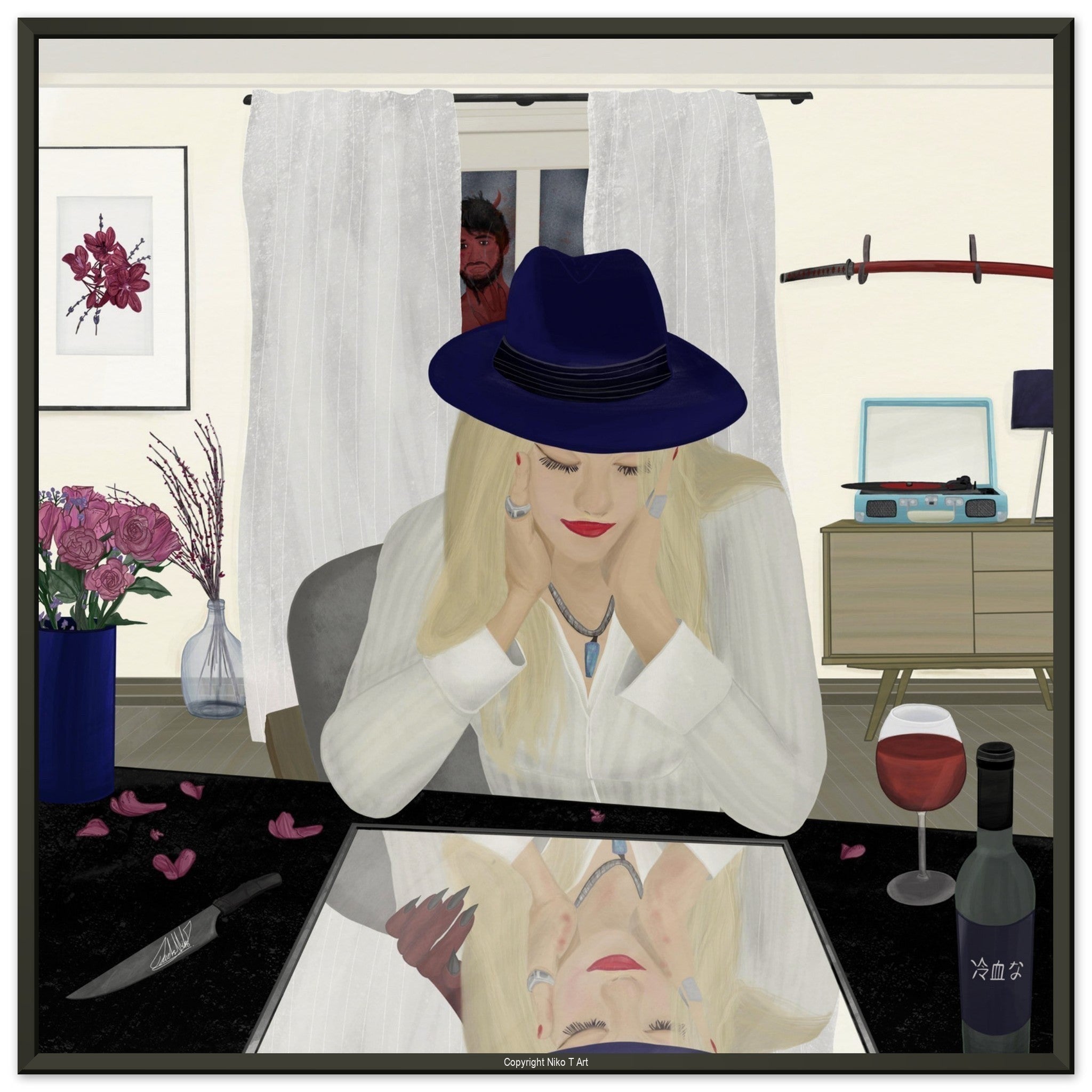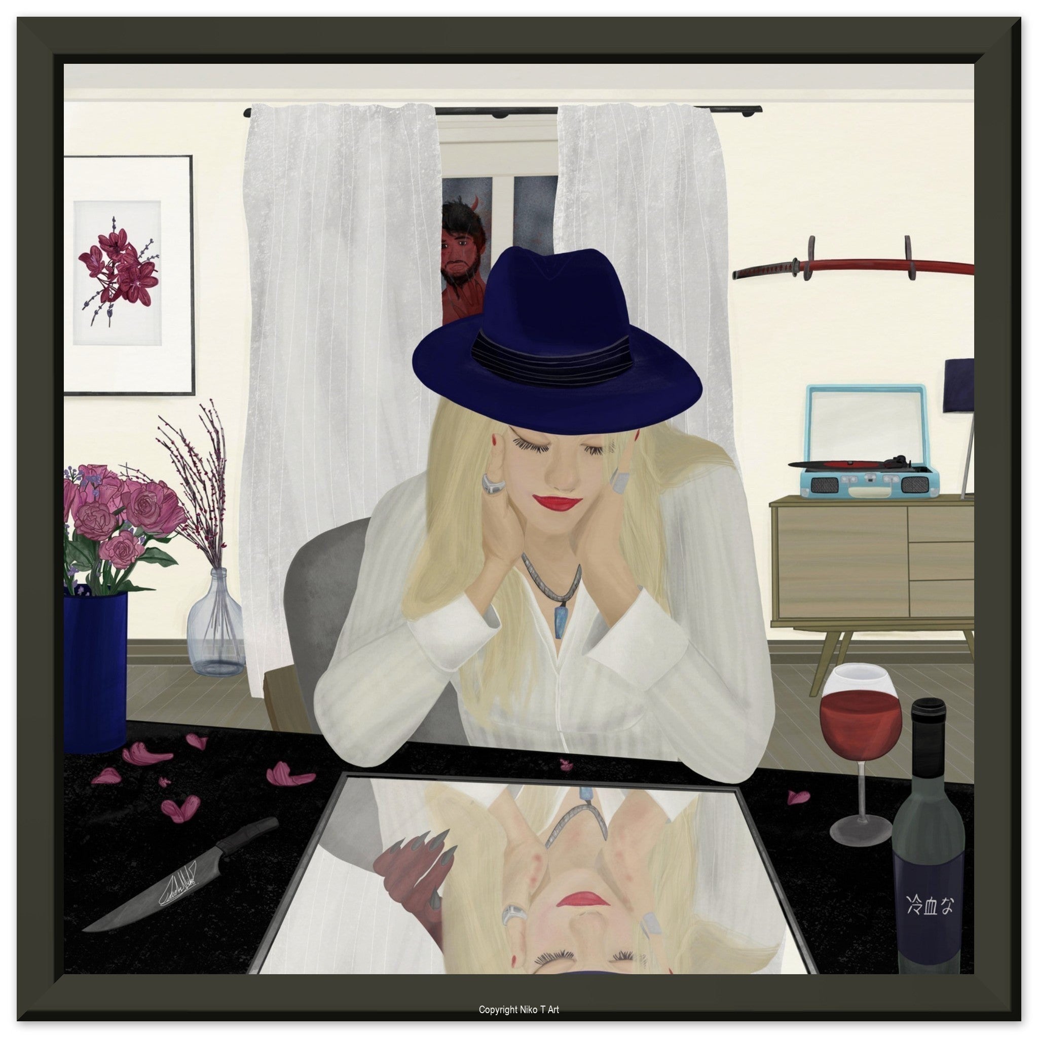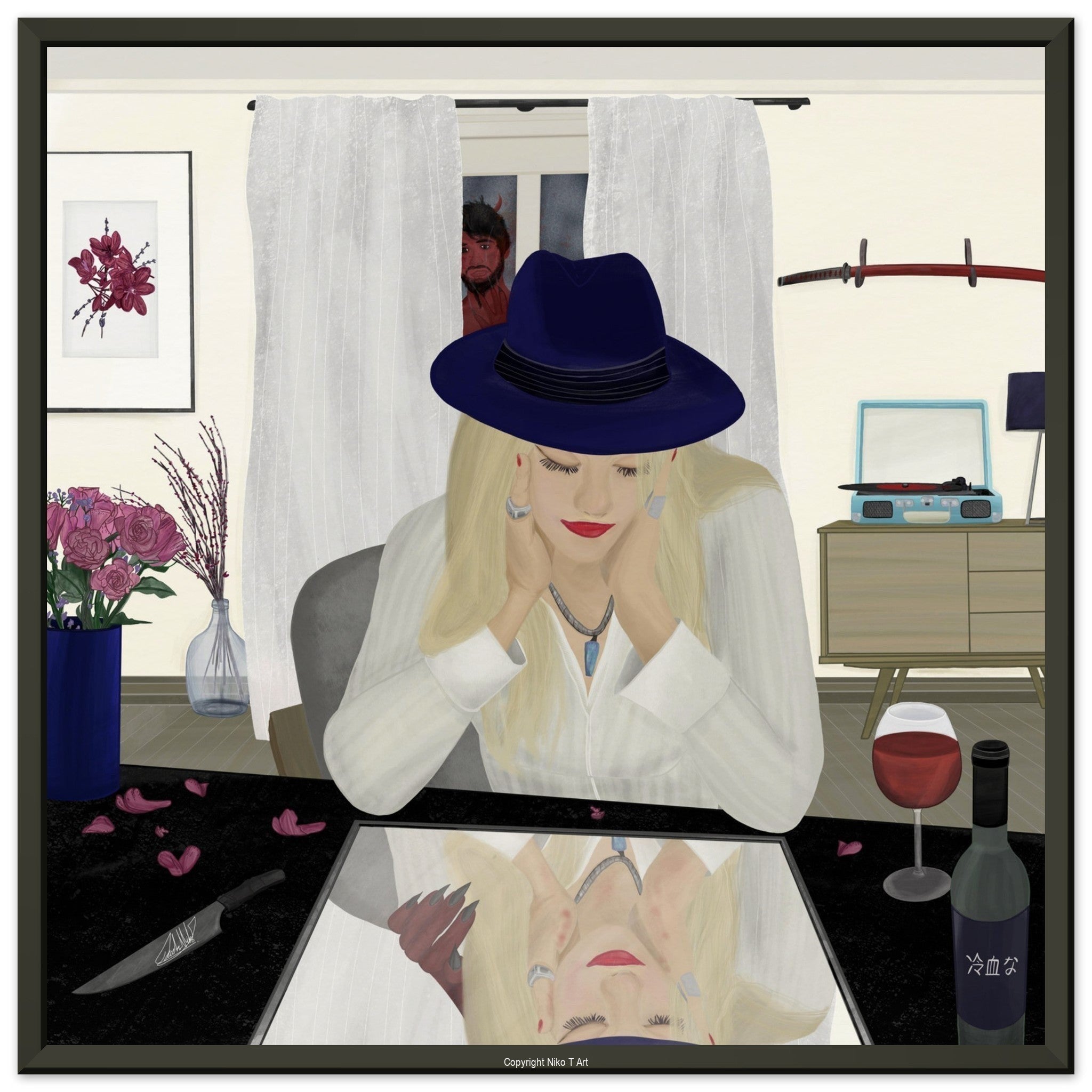 The paintings I do on my ipad are typically done with watercolour, oil paint, studio pens and pencil brushes.