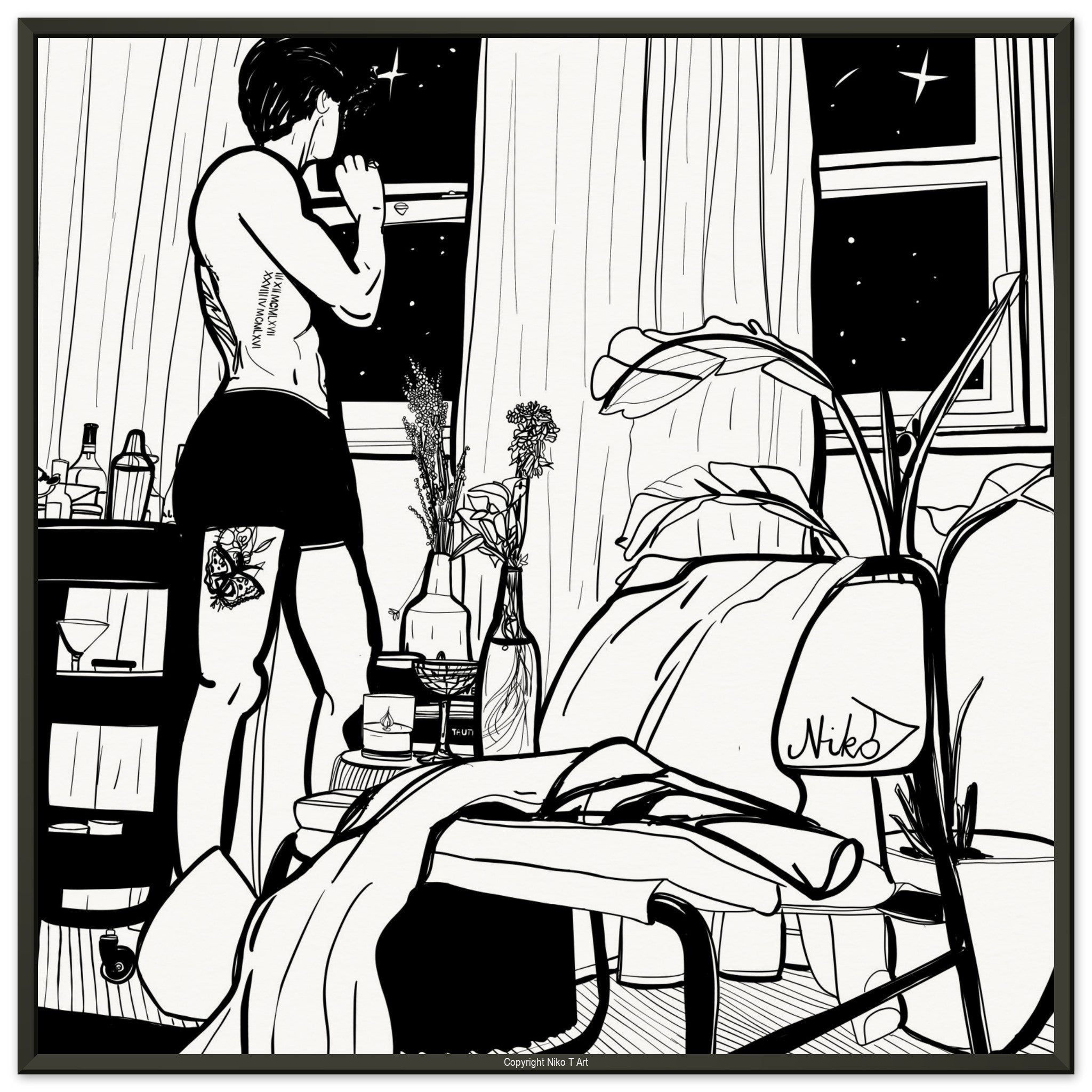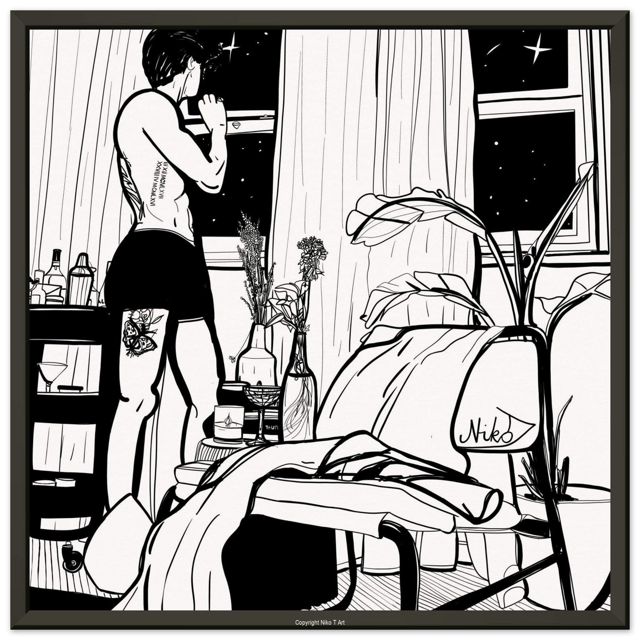 The paintings I do on my ipad are typically done with watercolour, oil paint, studio pens and pencil brushes.