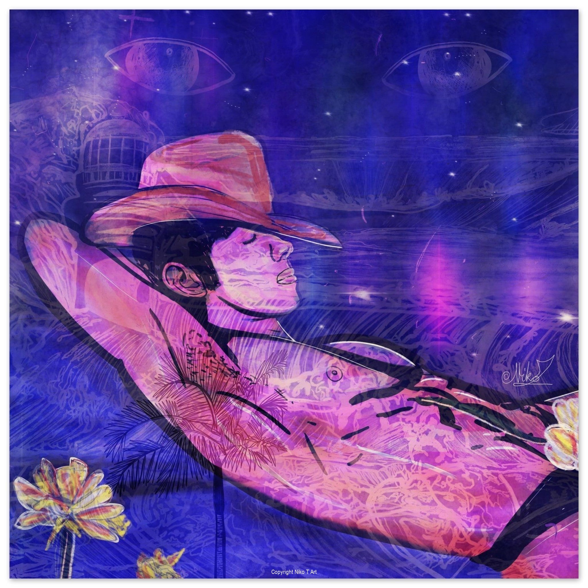Artwork printed on timber board; making for a great art experience in spaces flooded with natural light (no glass reflection).