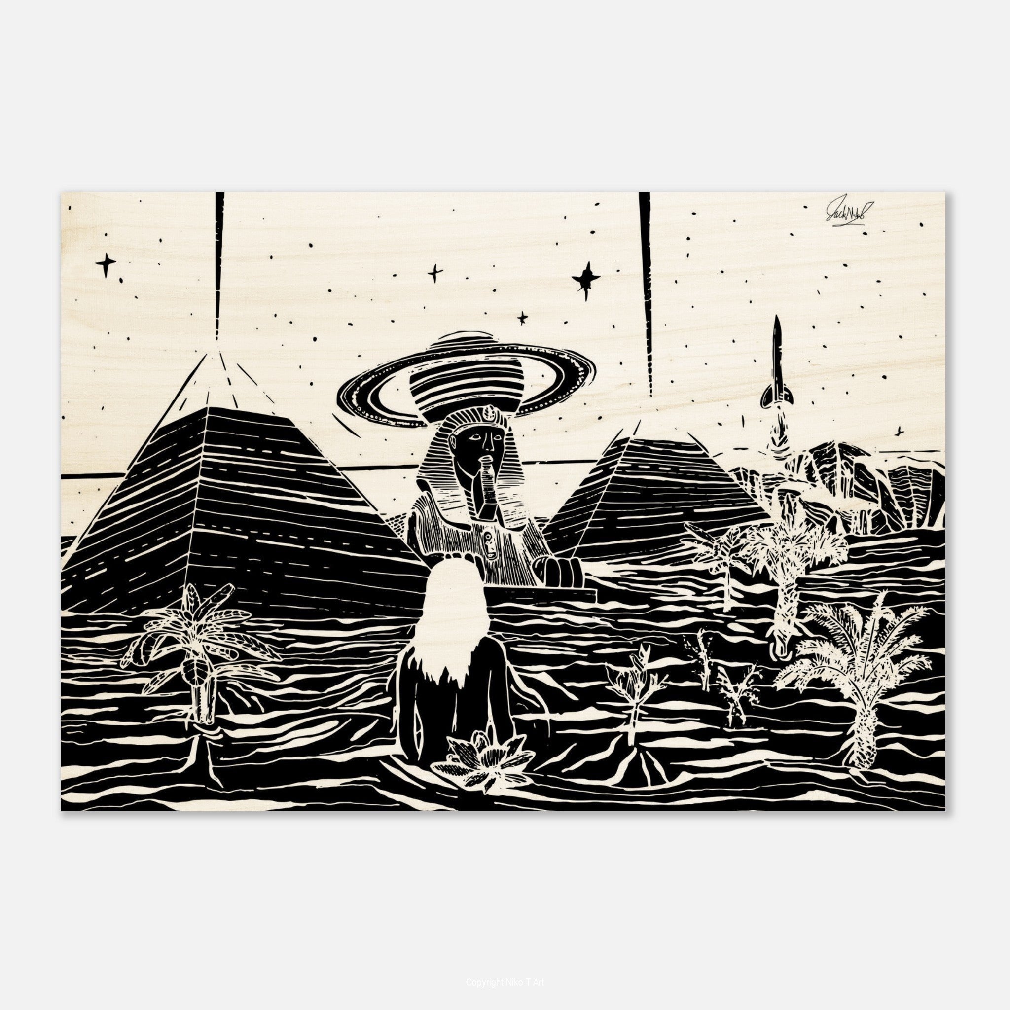 Artwork printed on timber board; making for a great art experience in spaces flooded with natural light (no glass reflection).